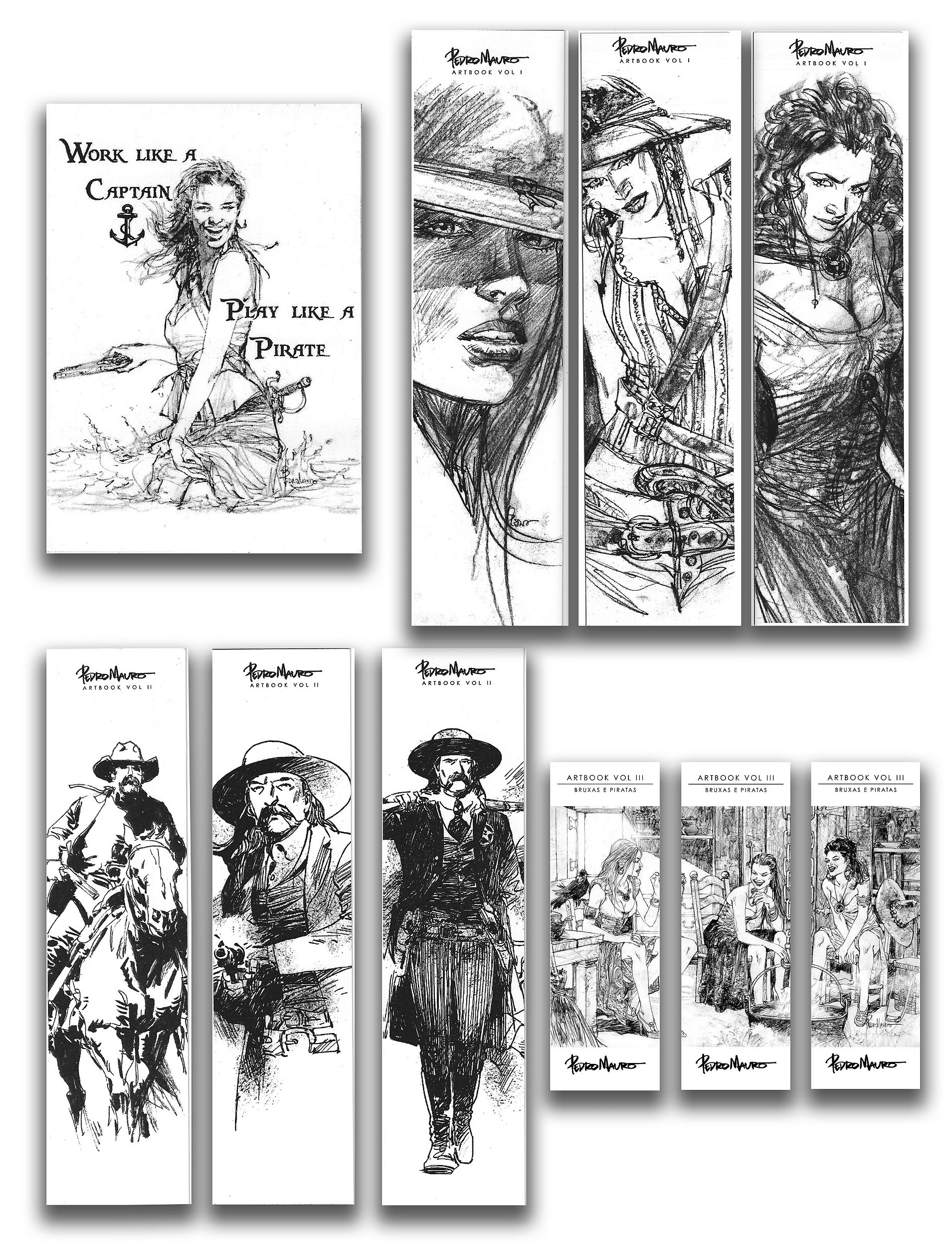 Coleção completa dos marca páginas que acompanharam os livros Artbooks Vols 1, 2 e 3 durante a campanha no Catarse.